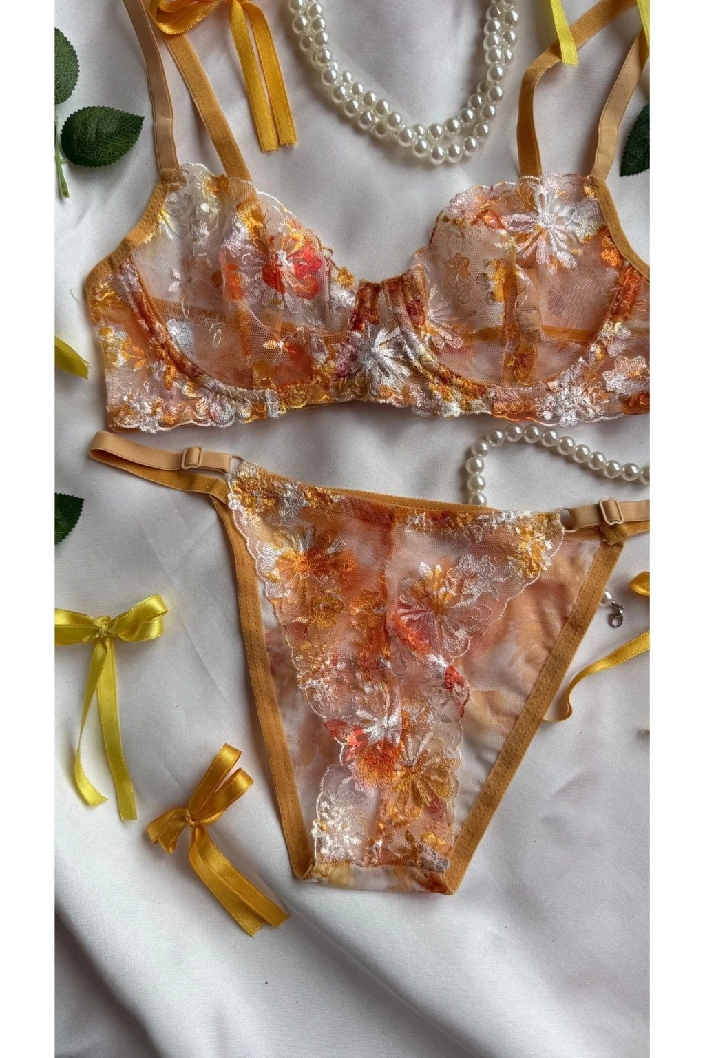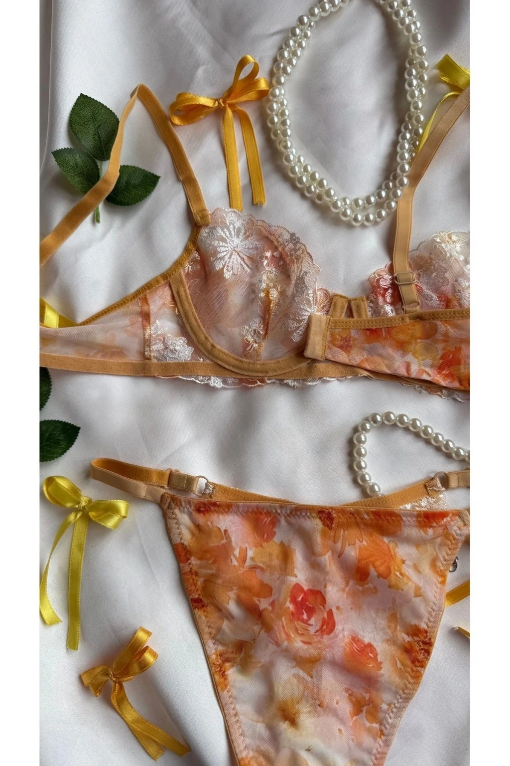 - Her yaş grubuna hitap eden tasarımıyla, Aurora Lüks Dantel İç Çamaşırı Serisi herkesin gardırobunda yerini almayı hak ediyor.; - Brode dokuma tipi ile zenginleştirilmiş bu iç çamaşırları, feminen detaylarıyla göz kamaştırıyor.; - Sürdürülebilirlik konusunda bilinçli olmayan bir ürün serisine sahip olan Aurora, çevre dostu alternatifler arayanlara hitap etmiyor.; - Baskılı deseniyle dikkat çeken bu iç çamaşırları, yaz aylarında rahatlıkla tercih edilebiliyor.; - Askılı kol boyu sayesinde omuzları serbest bırakarak maksimum konfor sunuyor.; - Balenli kalıbıyla vücut hatlarınıza mükemmel uyum sağlayacak şekilde tasarlanmıştır; böylece kendinizi daha çekici hissedersiniz.; - Modaya duyarlı kişiliklere hitap eden bu parça, stil sahibi görünümünüzü tamamlamanız için idealdir.; - Günlük kullanım için uygundur; casual ortamlarda rahatlıkla tercih edebileceğiniz bir seçenektir.; - Dokuma kumaş tipi sayesinde dayanıklılığı artırırken aynı zamanda yumuşak bir dokunuşa sahiptir.; - İki parçadan oluşan set içeriğiyle hem üst hem de alt parçada şıklığı yakalamanız mümkündür.; - Brazilian kesimiyle modern ve seksi bir siluet sunarken, poliamid karışım materyali esneklik kazandırır.; - Kapsız kap yapısıyla minimalist tasarım anlayışını benimseyenler için uygundur.; - Desenli ek özellikleriyle görsel zenginlik katarken, poliamid karışımlı malzemeler uzun süreli kullanım vaad eder.