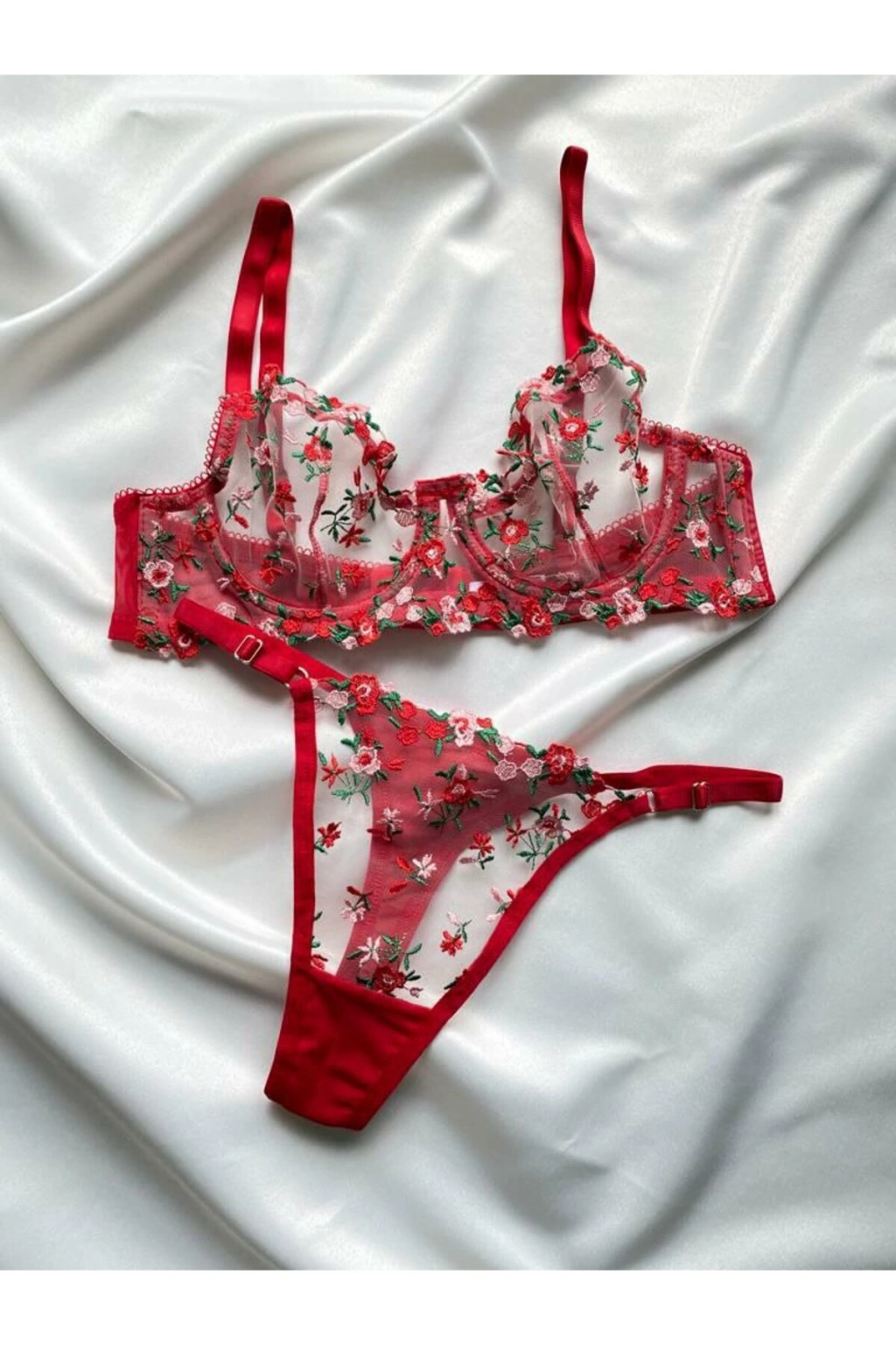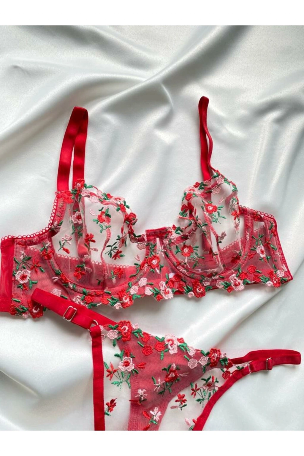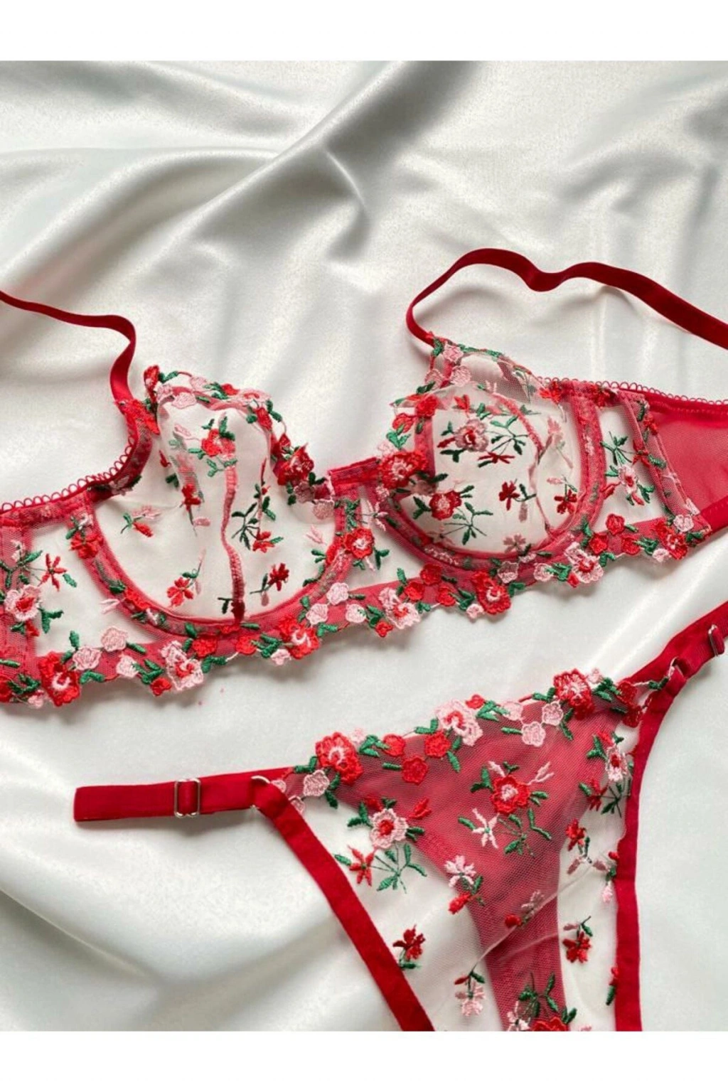 Her yaştan kadının rahatlıkla tercih edebileceği transparan sütyen takımımız, iç giyim koleksiyonumuzun zarif bir parçası olarak öne çıkıyor.; Broderie detaylarıyla zenginleştirilmiş nakış işlemeleri, takımınıza sofistike bir dokunuş katıyor.; String alt siluetiyle minimal ve şık bir görünüm sunarken, balenli kalıbı konforlu bir kullanım sağlıyor.; Pembe rengiyle feminenliği ön plana çıkaran bu takım, sabit kap özelliği sayesinde mükemmel destek sunuyor.; Bralette üst siluetiyle modern ve şık bir görünüm elde edersiniz; kalp deseni ise romantik bir hava katar.; Şık gece ortamları için ideal olan bu transparan sütyen takımını, özel günlerinizde tercih edebilirsiniz.; İki parçadan oluşan set içeriği ile hem üst hem de alt parça ihtiyacınızı tek bir üründe karşılayabilirsiniz.; Balenli yapısı sayesinde mükemmel formda kalmanızı sağlarken dantel materyali hassas teninize nazikçe dokunur.;