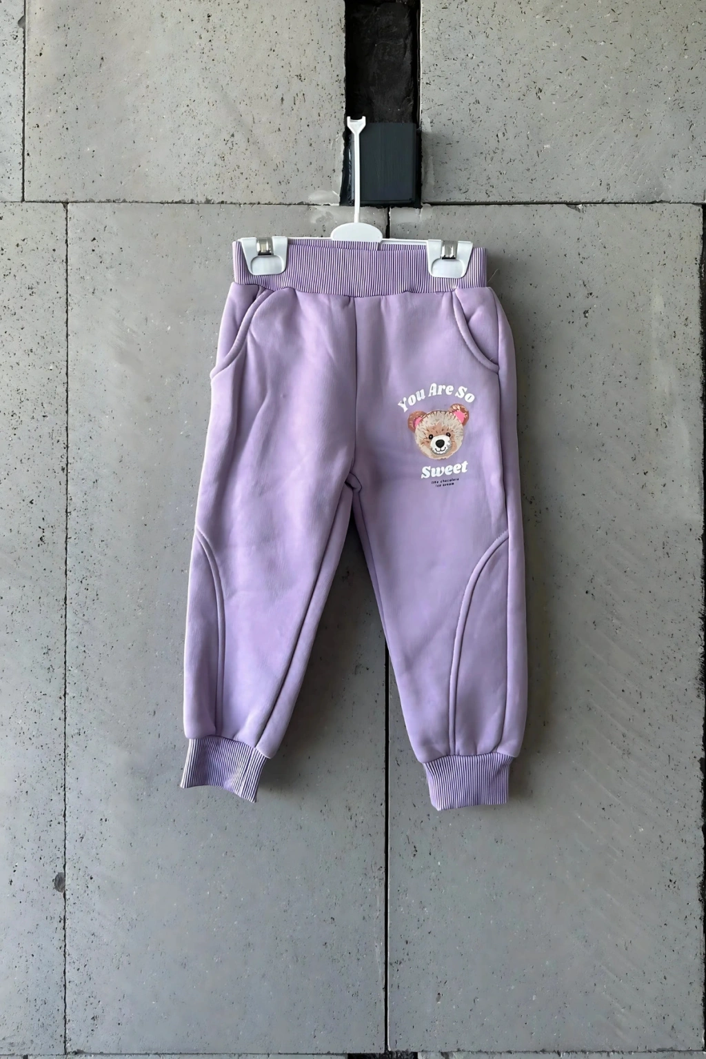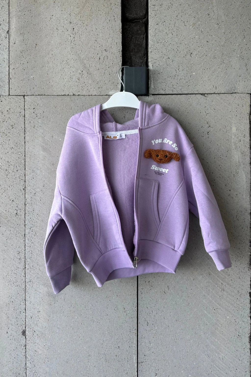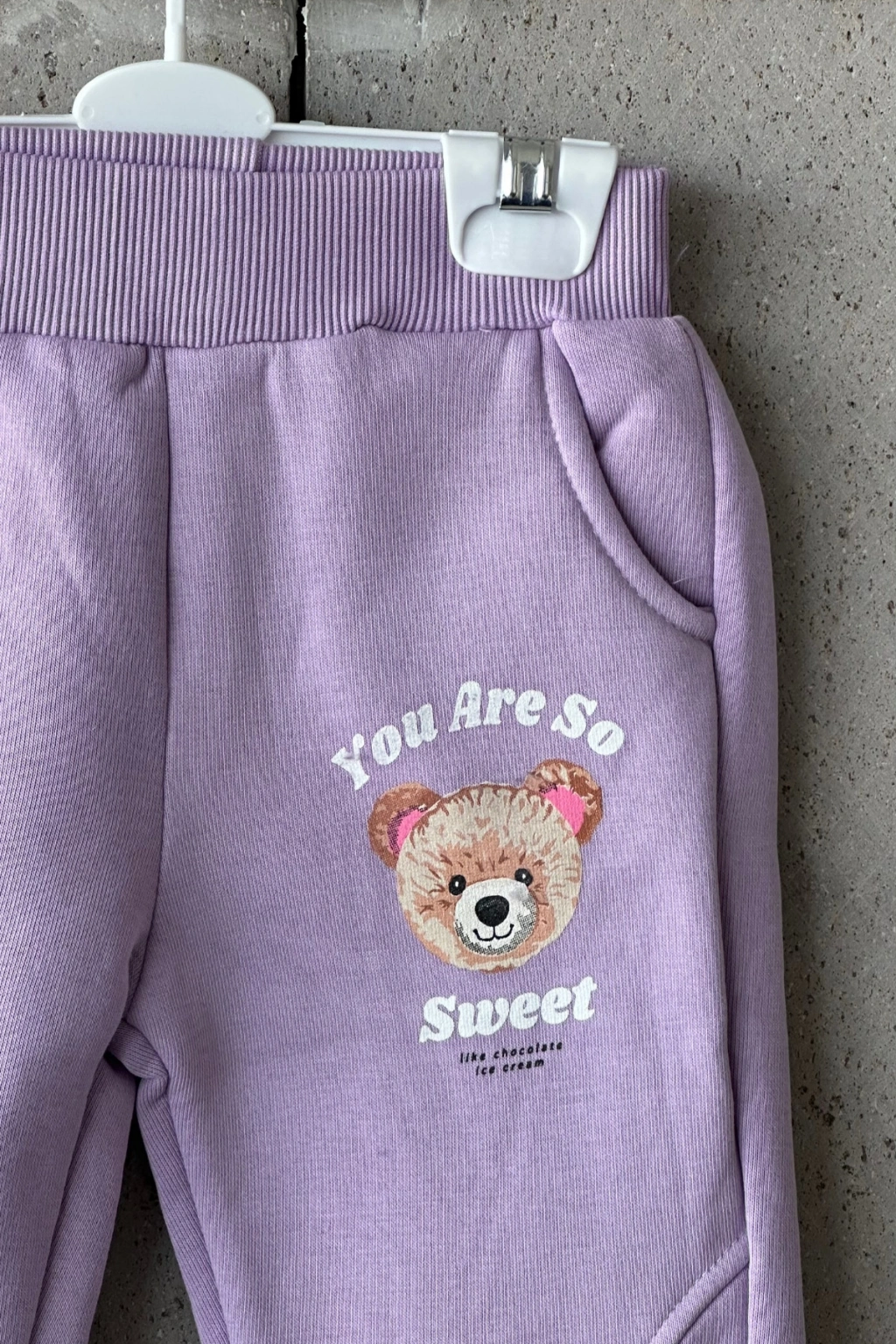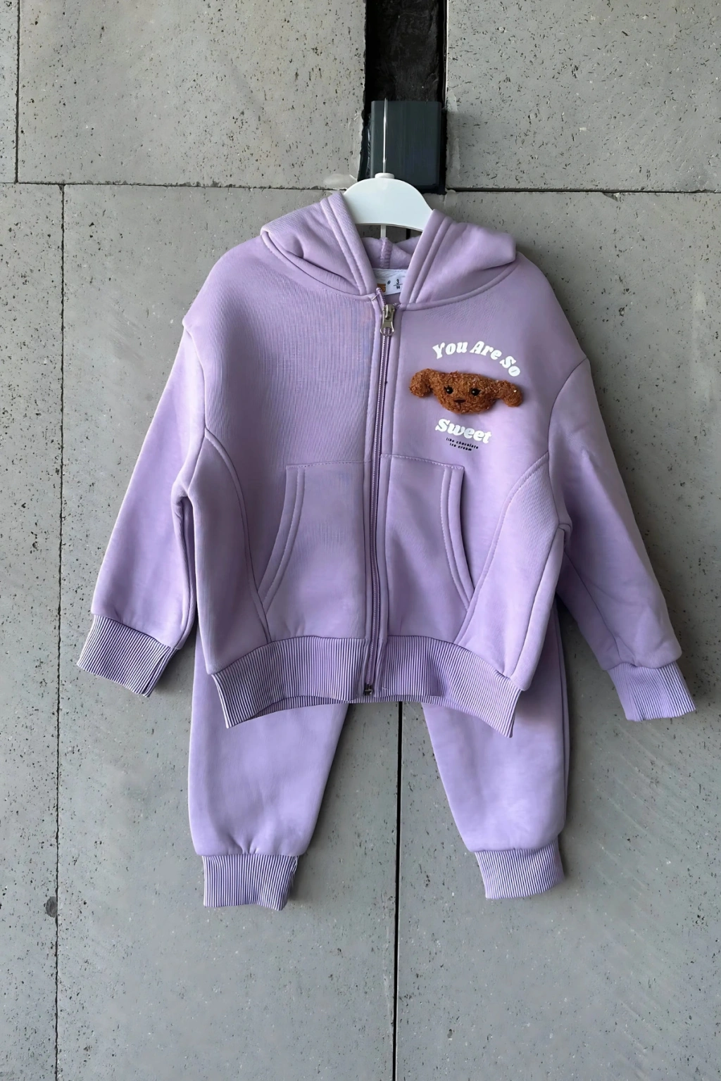 Bayramlık Lila Ayıcık Nakışlı Kız Çocuk Eşofman Takımı