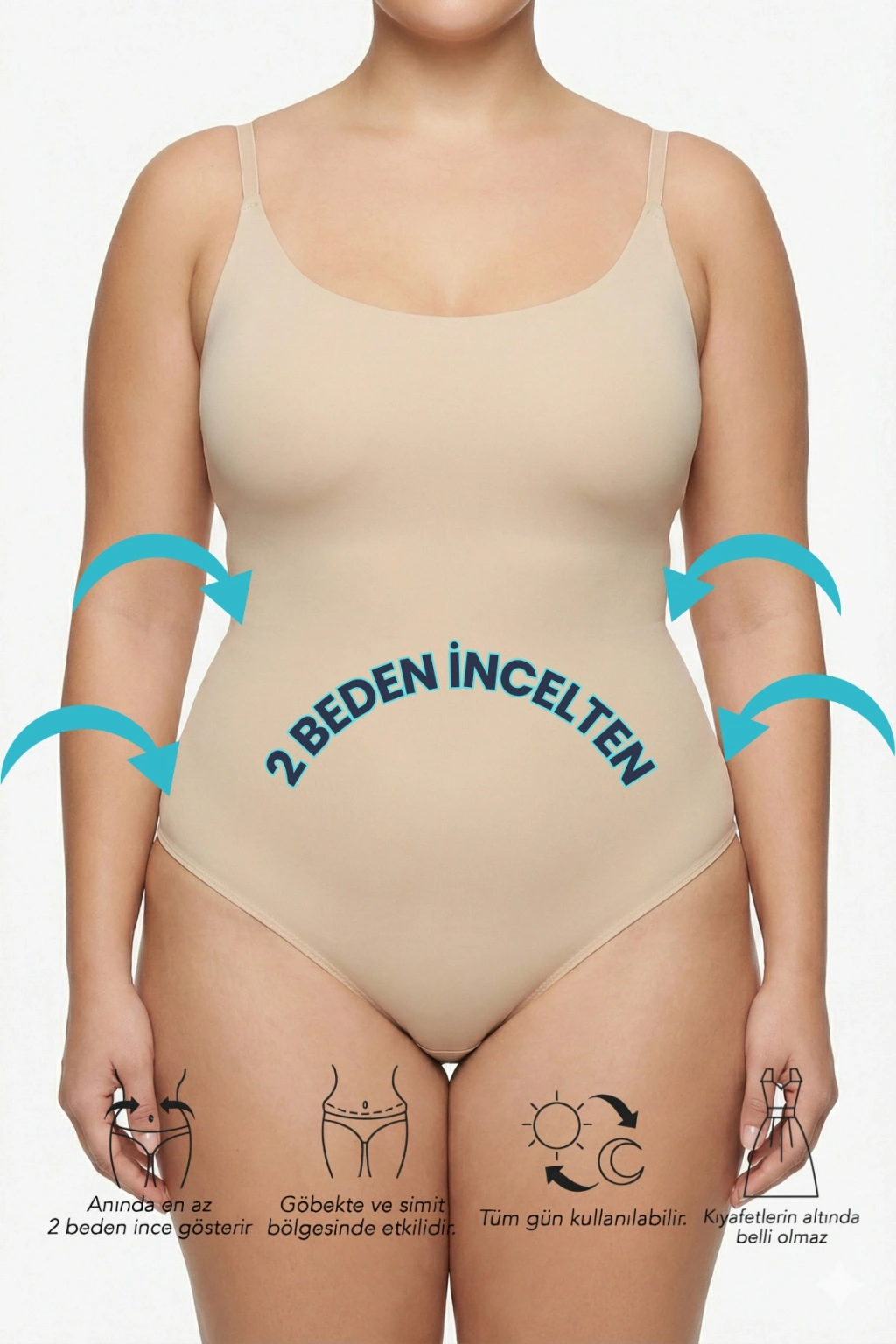 Vücudu eşit şekilde saran slip body korse, elbise, tişört ve dar kıyafetlerin altında pürüzsüz bir görünüm oluşturur. Günlük kullanım için idealdir, hareket özgürlüğünü kısıtlamaz.