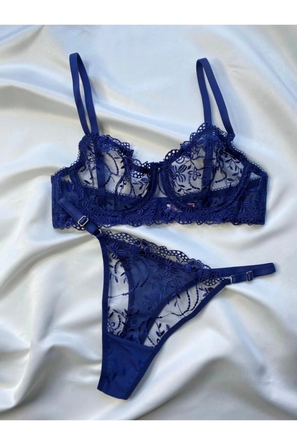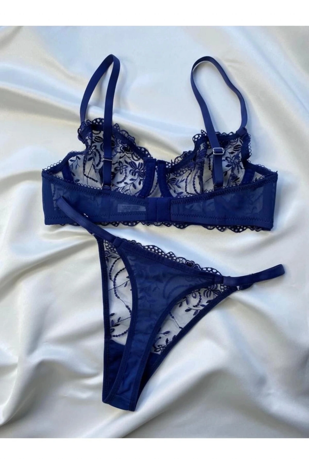 Lacivert Dantelli Iç Çamaşırı Takımı Seksi Iç Çamaşır Takımı Sütyen Tanga Takım Dantelli Sütyen
