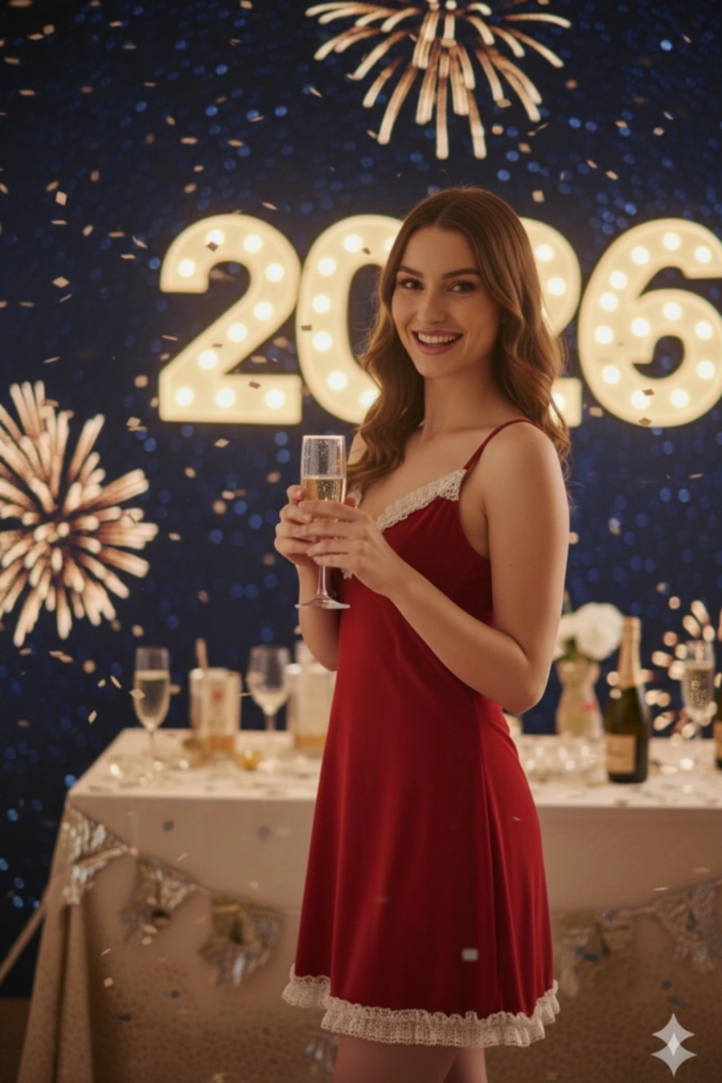 Sohadid Celebration Red – Premium Yılbaşı Geceliği, yeni yıl gecesinin ışıltısını ve zarafetini üzerinizde hissettirmek için özel olarak tasarlandı.
